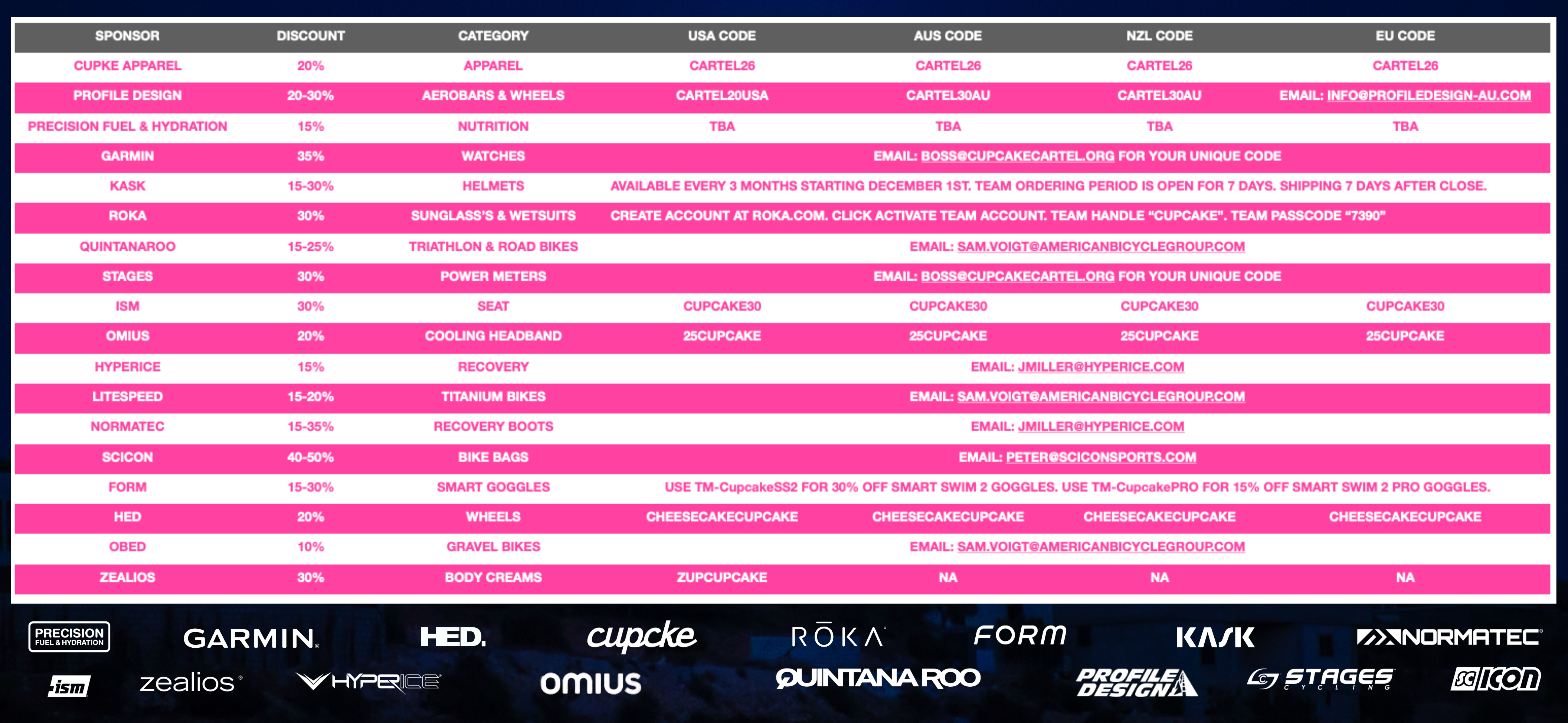 Cupcake Chat 2026- This is a private facebook group for current team members only. You will find all team video chats, athlete spotlights, tri club points updates and many more helpful communication resources. This is the central hub of the team.